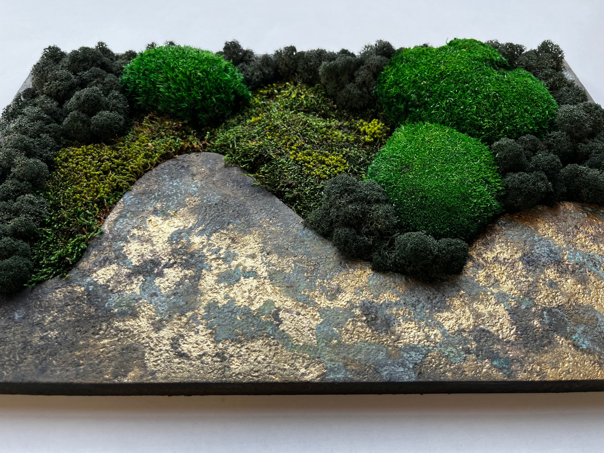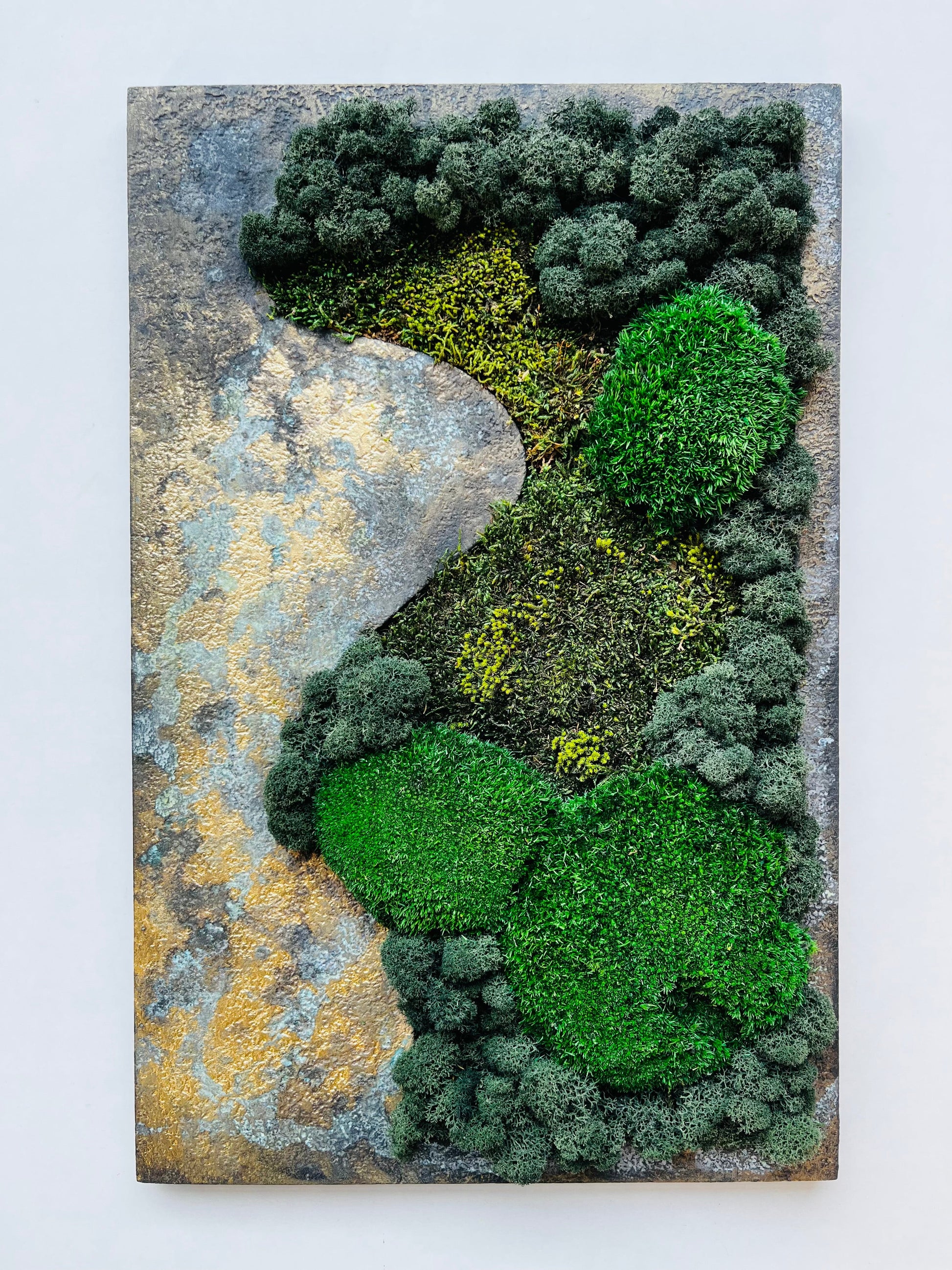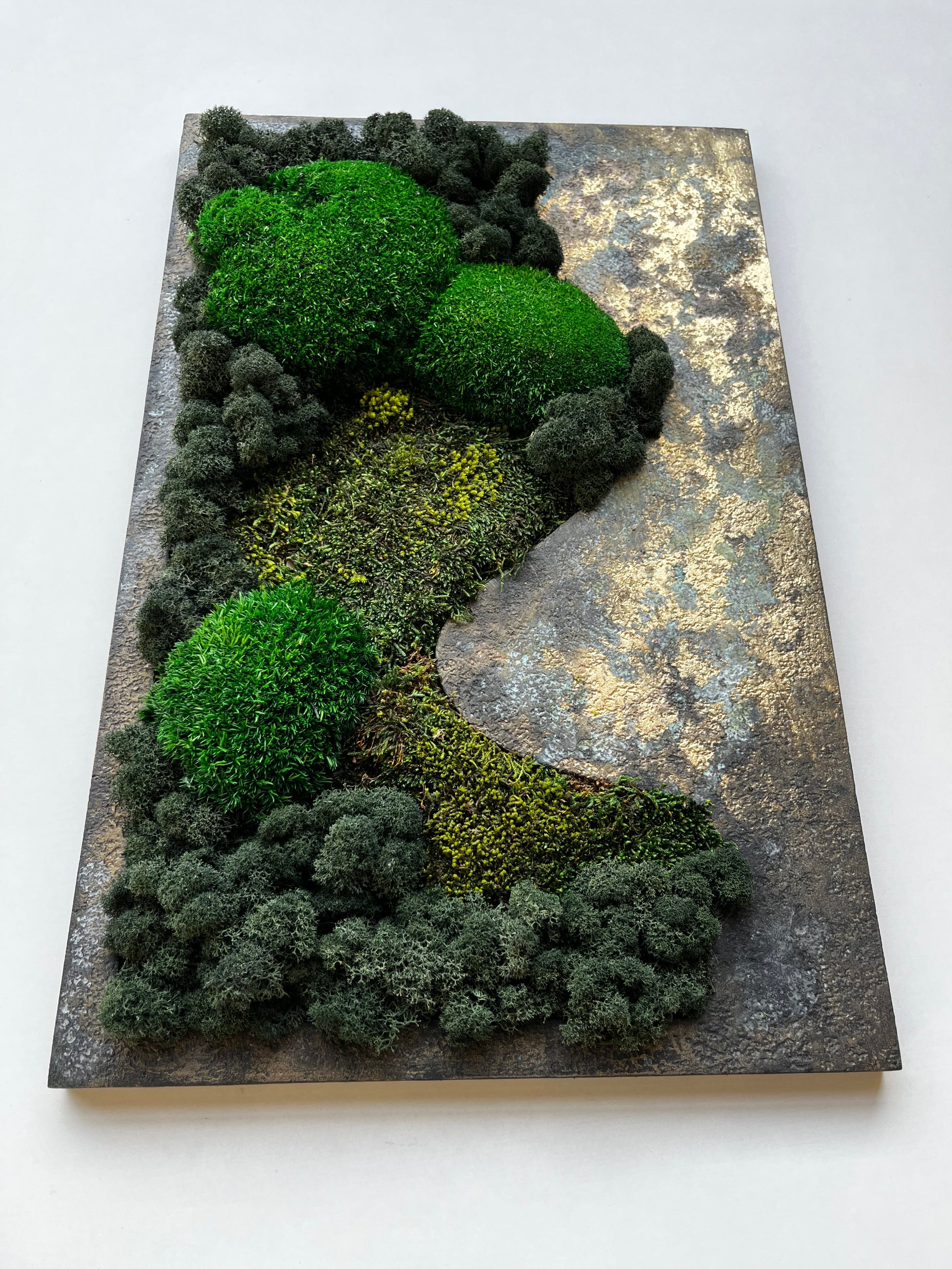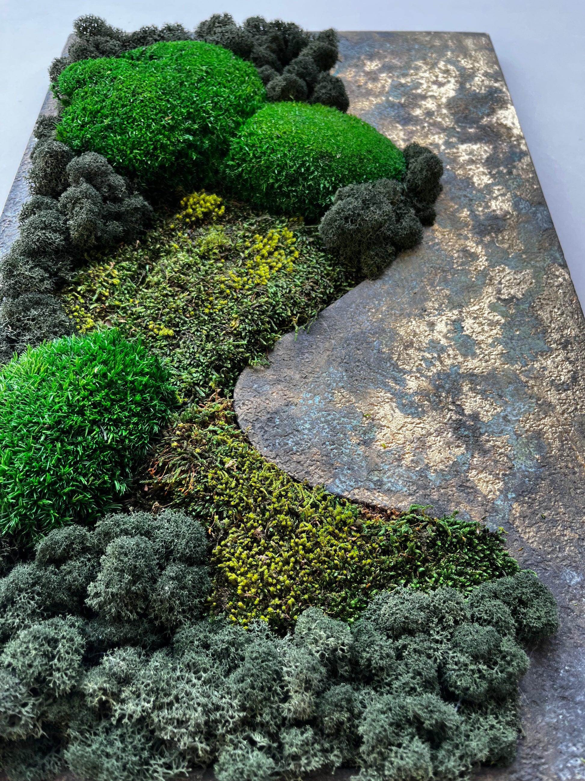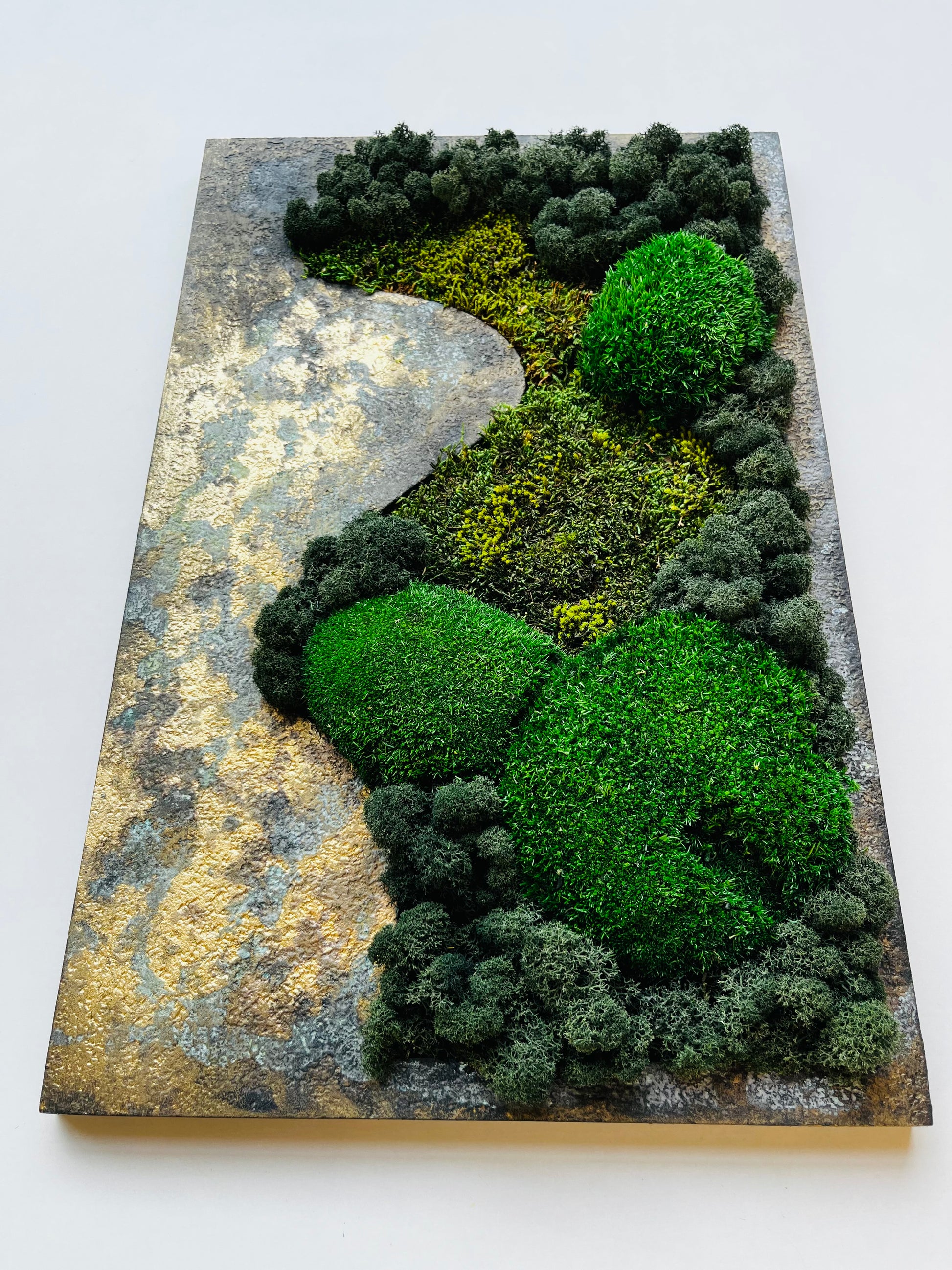 Samanos sukuria trimačio reljefo pojūtį, suteikdamos kūriniui natūralumo ir gyvybingumo. Kadangi naudojamos stabilizuotos samanos, jos nereikalauja priežiūros, išlaiko savo spalvą ir tekstūrą ilgus metus.