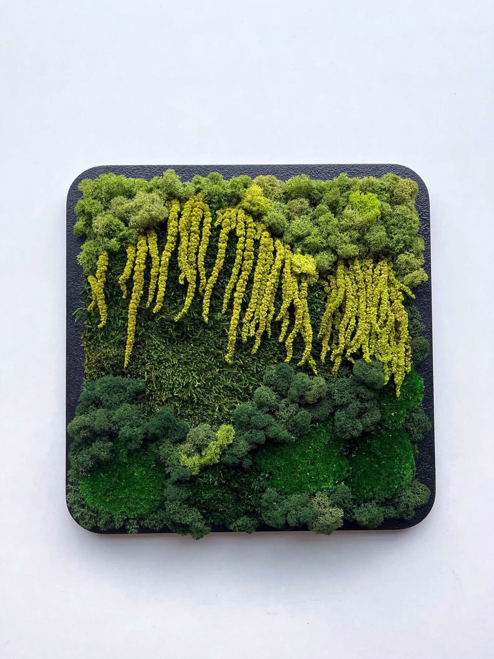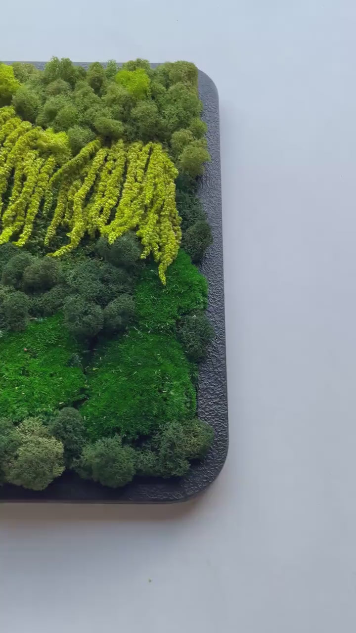 Stabilizuotų samanų paveikslai – puiki interjero detalė, pagyvinanti interjerą. Nereikalauja jokios priežiūros, nereikia laistyti ar skirti ypatingos priežiūros. Įkomponuokite gamtos fragmentą į savo namų ar biuro interjerą.